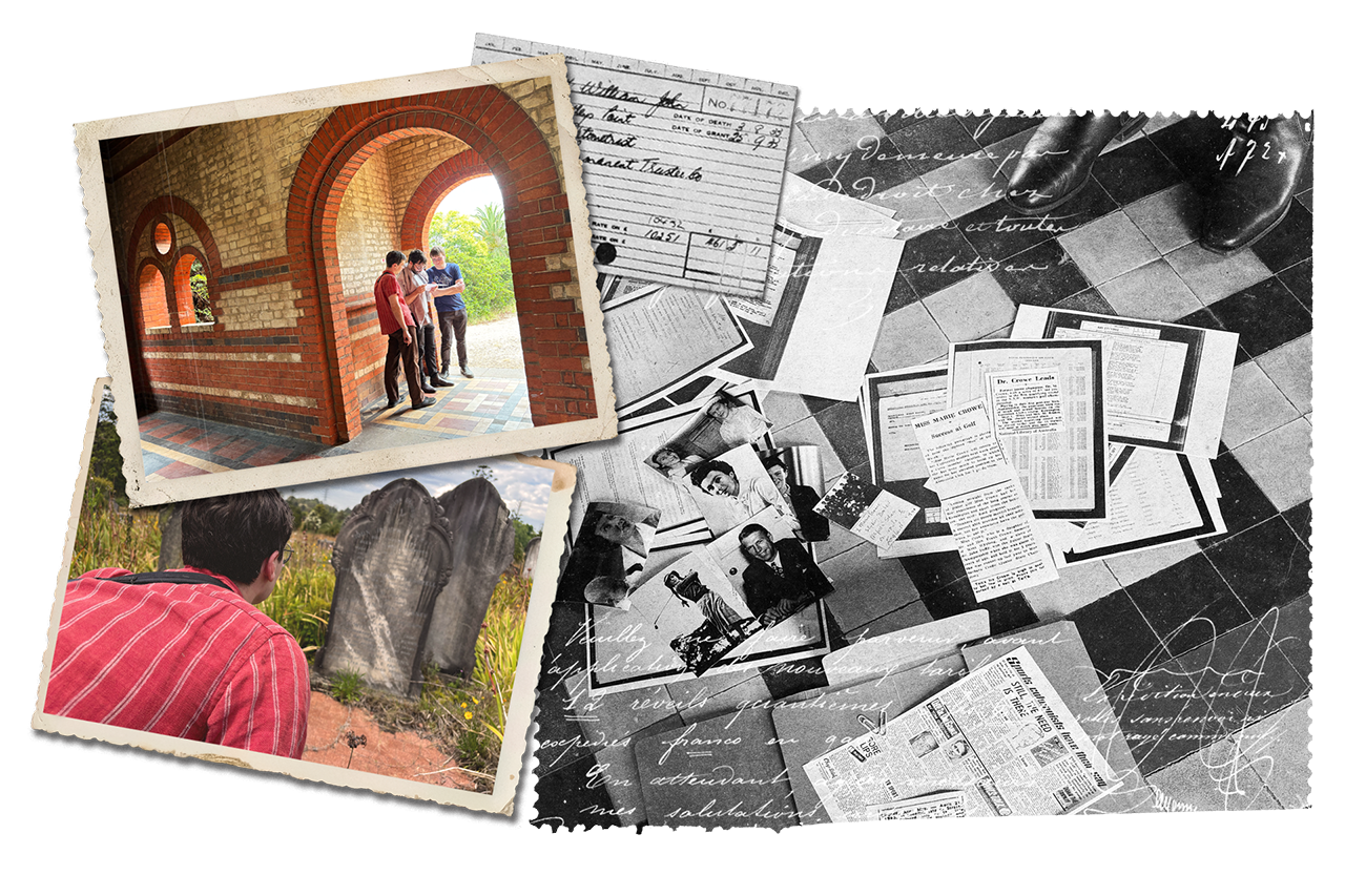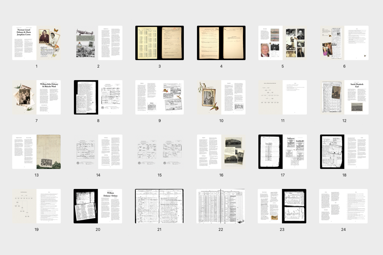 The experience ran as a one day, four hour journey across six locations, intentionally moving from the familiar to the unknown so the emotional stakes could build as the story reached further back in time. I guided the participants through the route and paced the story reveal through a mix of spoken narration and physical materials delivered at specific moments. Participants received envelopes, prompt cards, old photographs, newspaper cutouts, infographic timelines, and reproduced archival documents, including records that had been top secret and later declassified. Some prompts were reflective, others were puzzle like and collaborative, for example decoding a handwritten document to identify what tattoos a great-great grandfather had, then drawing them onto a silhouette template.